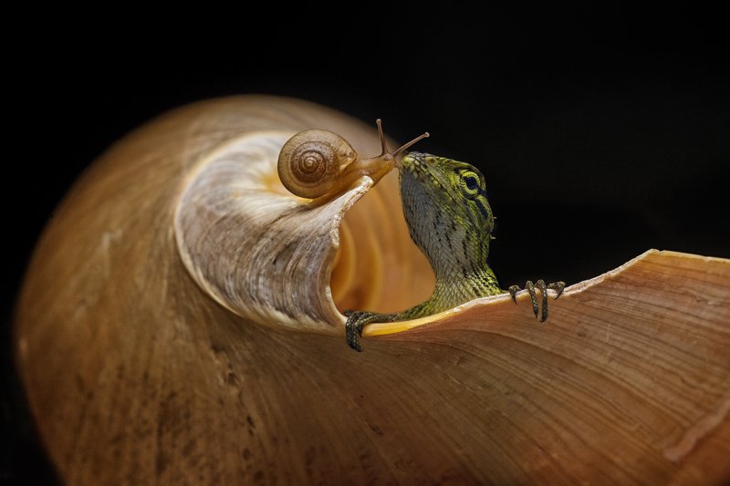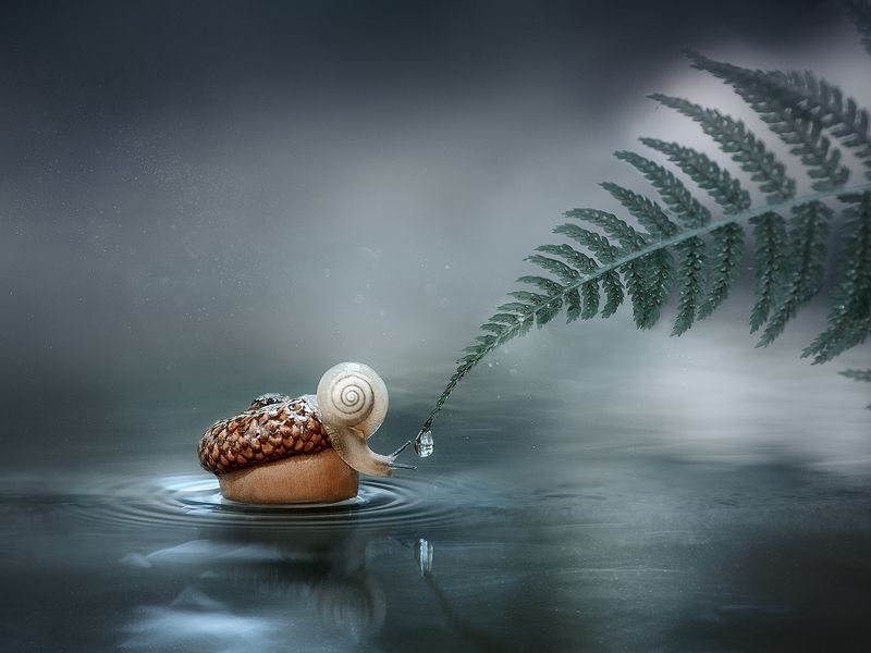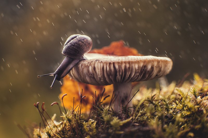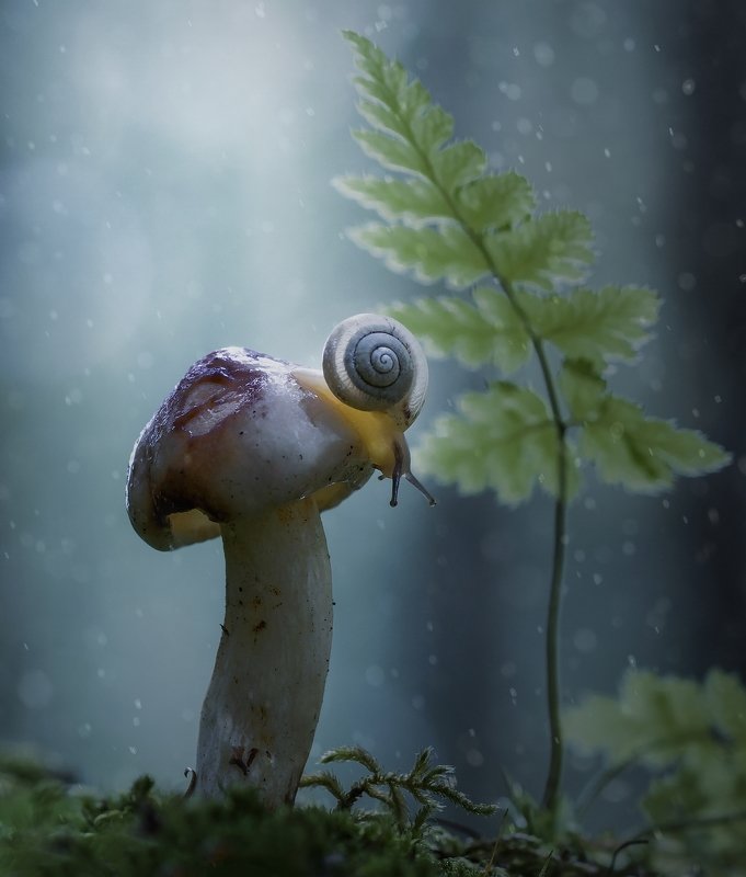 Имел соблазн наложить текстурку с точками, в остальном все снято в лесу под Красноярском. Улитка лесная, местная)