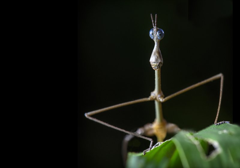 На снимке показан Eumantispa harmandi - вид насекомых, относящийся к, так называемым, мантиспам, очень необычному семейству сетчатокрылых. Эти насекомые похожи на известных каждому богомолов, но не являются их близкими родственниками. Снято в России (Приморский край). Фотоаппарат Nikon D850, Tamron SP 90mm F2.8 Di VC USD Macro, вспышки Meike MK-MT24 (4 штуки). 1/100, f14, ISO 160. The picture shows Eumantispa harmandi, a species belonging to the so-called mantis-flies, a very unusual family of Neuroptera. These insects are similar to the praying mantis known to everyone, but are not their close relatives. Taken in Russia (Primorsky Krai). Nikon D850, Tamron SP 90mm F2.8 Di VC USD Macro, flash Meike MK-MT24 (4 pieces). 1/100, f14, ISO 160.