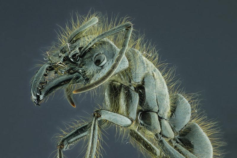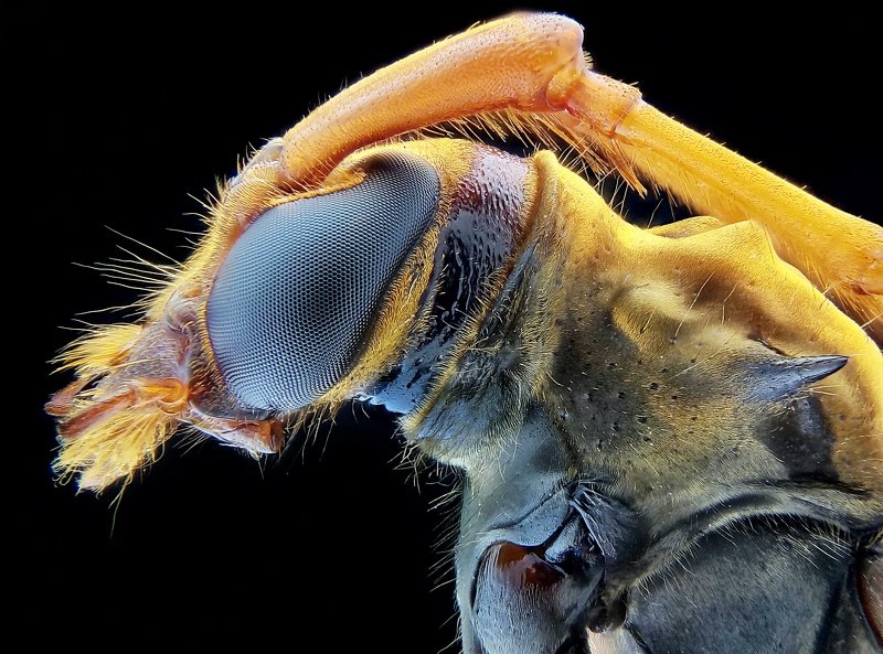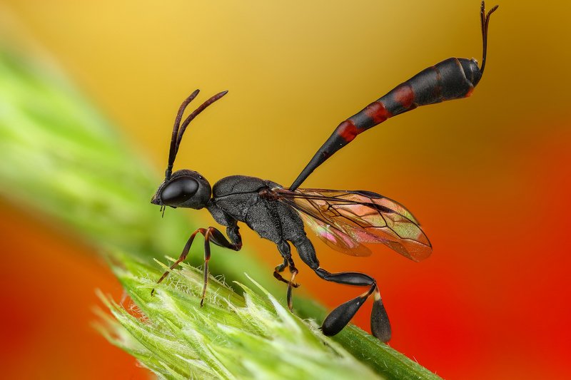 Оса. Фотография сделана в несколько кадров с разной точкой фокусировки (брекетинг по фокусу), затем сшита в программе.