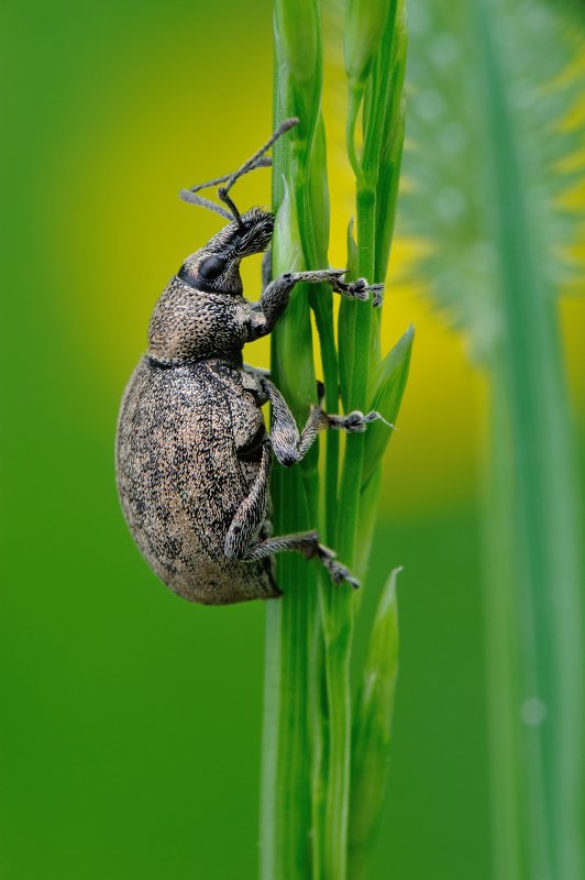 В это утро мне попадались несколько таких жучков, но подпустил только один, остальные cпрыгивали на землю при приближении. Из за очень теплых и сухих без росы летних дней было затруднительно приближаться к насекомым этим летом.