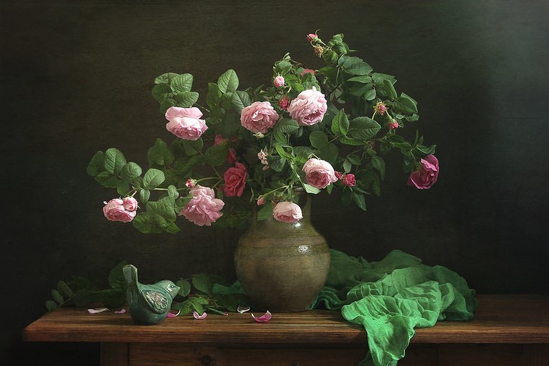 Красные маки, розовые маки, графин стеклянный, деревянный ящик, салфетка, ретро, ностальгия. ришелье, вышивка,естественный свет, весна, лето, лепестки,стебли,блики,натюрморт.
