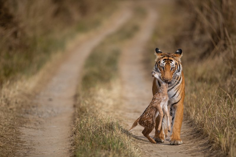 I was a witness to a strange behaviour of the lioness after a pregnant kill.. The lioness went into her usual routine and started feeding on the kill... The unborn womb was outside her abdomen, after her fill she dragged the kill to the safety of a bush.. And as usual walked to get her cubs for the feed.. We were astonished, and stunned when she came back a few steps and picked up the unborn womb and carried it in her mouth for her cubs to feed.. A rare and spine chilling experience, of mixed feeling, sadness for the date of the unborn and love of the mother towards her cubs..