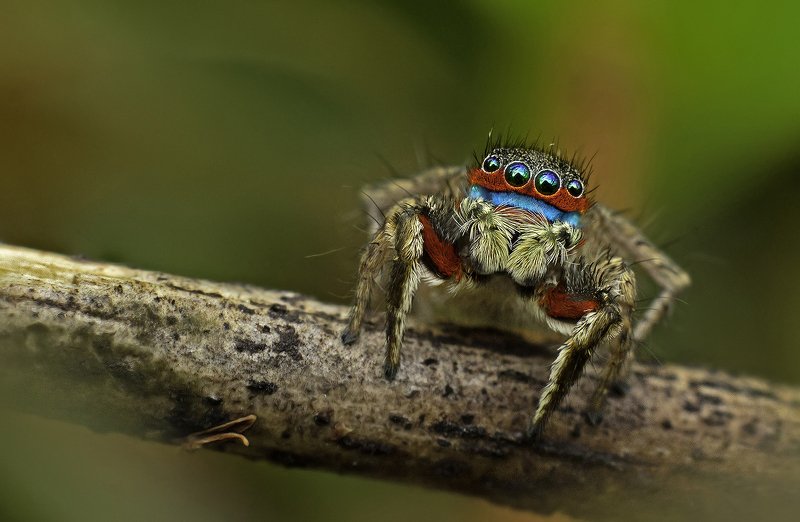 The metallic jumper ( Siler semiglaucus,) colorful jumping spider is a species of spider of the genus Siler. Metalic jumping are known as a good hunter and I have to witness this beautiful movements where a giant ant taken down by this little master in a seconds . This image I have taken at Outskirts of Siliguri, a small town nearby at Darjeeling, West Bengal, India Gear use : Canon 1300D with 55-20 mount with Raynox filter , external flesh fired with home made diffuser .