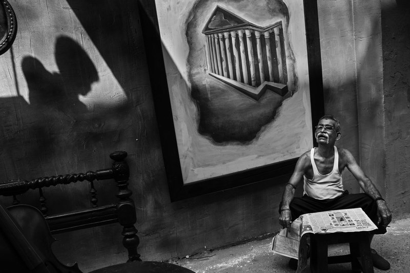 The giant mirror that the Mandarmani beach turns itself into during early hours of winter is a perfect place for shooting some stunning photos. As I saw this man riding his cycle down the beach against a dramatic sky, I knew I had to take the shot. The streaking sunlight from the left rounded up the composition. I don't know if you can see this, but in the bag in the back of the cycle he was carrying a live goat.