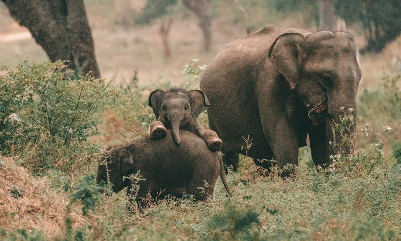 This picture was taken while two baby elephants were playing in the National Park of kaudulla Sri Lanka.