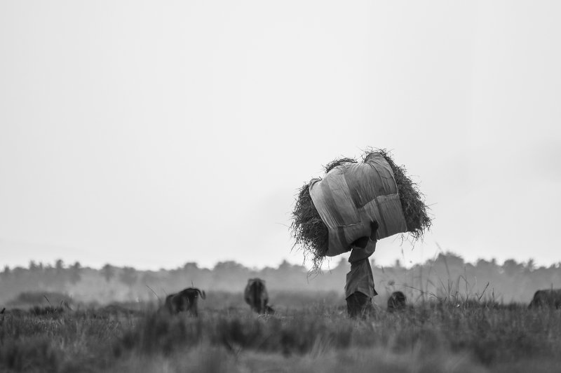 Carts are carrying hay save to the livestock and feed them in the rainy season