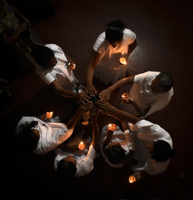 I was taking shots of street food carts, vendors and customers lined up along the promenade of Galle Face Green and came across this cart filled with crunchy 'Isso Wade' and yummy 'Ulundu Wade'. Then I noticed reflections forming on the showcase and waited for the right moment. As soon as I saw the reflection of a little boy passing by, I quickly clicked. Only after taking the shot I noticed that the vendor had placed his hand to pick a wade from the showcase, and in a mysterious coincidence the two hands seemed to have connected at that very moment.