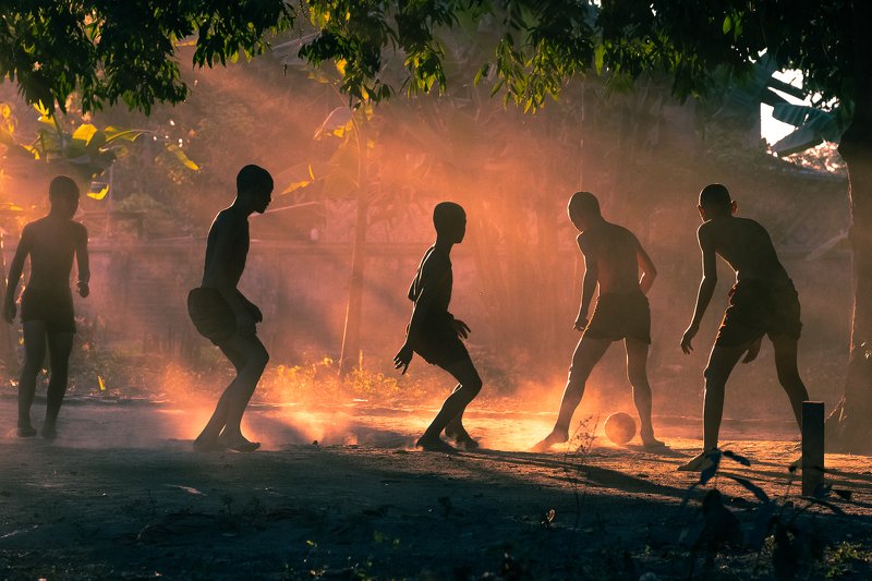 I captured this photo at Yay Bote Gyi village, Myanmar.When evening time all children come out from home to playground and playing together daily after school. Now today cannot feel free all people ,children their life because of COVID 19 virus.