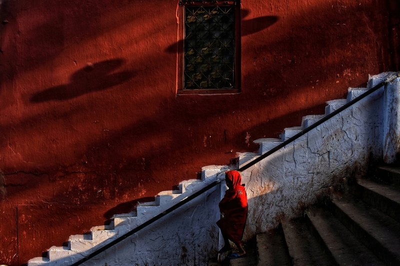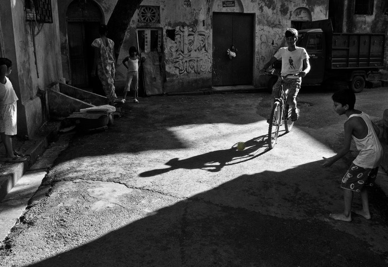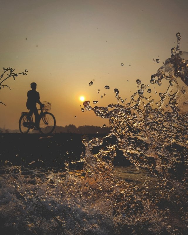 The giant mirror that the Mandarmani beach turns itself into during early hours of winter is a perfect place for shooting some stunning photos. As I saw this man riding his cycle down the beach against a dramatic sky, I knew I had to take the shot. The streaking sunlight from the left rounded up the composition. I don't know if you can see this, but in the bag in the back of the cycle he was carrying a live goat.