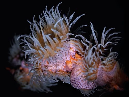 The Anemone Nemanthus annamensis (Carlgren, 1943), is one of the most beautiful anemone in the nature and the Shrimp, Izucaris masudai (Okuno, 1999) is totally camouflage in the Anemone. The size of the Shrimp is 1 or 2 cm approx.