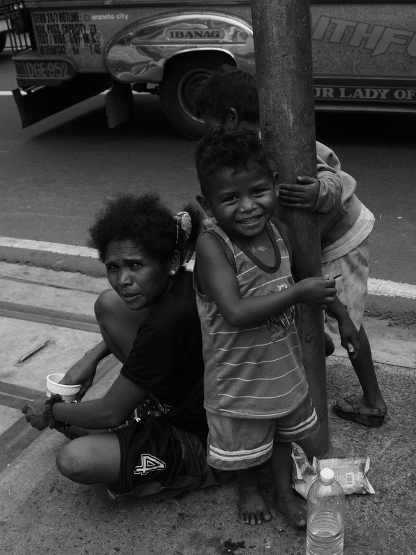 Photo was taken few days before new year, and these family of three (mother and 2 children) are begging money on the street for them to survive. One child is smiling not minding their daily struggle, also the smile was like always giving hope for her mother to not give up on daily challenges.