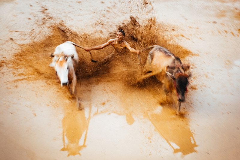 Bull fight at Chittagong,Bangladesh, Its a traditional game before Muslims religious festival Eid vul azha. Its a very famous occasion at Chittagong. But now government trying to stop this game due to its brutality.