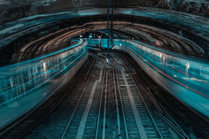 Московское метро. Съемка на длинной выдержке. Moscow metro. Long exposure