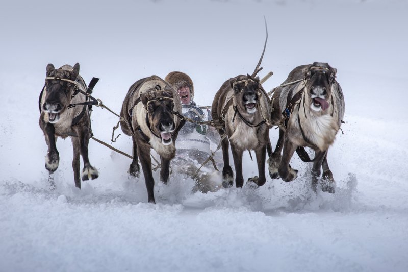 Крайний север, Гонки на оленьих упряжках в День оленеводов на Ямале. Ежегодно 23 марта в Тазовском районе ЯНАО местные оленеводы устраивают состязания, состоящие из двух этапов - аркан и бега на оленьих упряжках, победителю достается денежный приз.