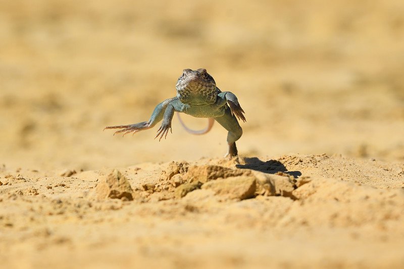 Common collared lizard (Crotaphytus collaris) - it\'s a very moving lizard. When he needs to escape, he runs on two legs. It was not easy, but after a few attempts, this escape finally managed to capture me. Animal in human care (assisted photography).