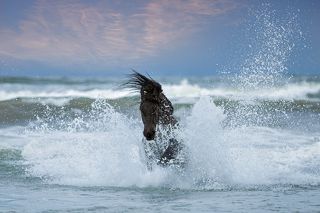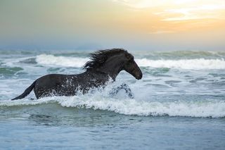 It was the first time these two horses enter the sea, but soon they get used to the waves. The shooting was supported by trainers, who chose the best location. Even the dark clouds that appeared on the horizon, announcing the arrival of a storm, helped in the composition of the photo, making the images even more dramatic and magical.