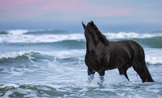 Their most famous series is “Friesians in the Sea” with Friesians horses, one of the most beautiful and oldest breeds in the world, surrounded by the sea waves, in a deserted beach on the south coast of São Paulo State in Brazil. The Friesians were portrayed in many paintings of the Middle Ages, took part in The Crusades and acted in films about that time, such as “Ladyhawke”. Native from northern Holland, they are tall, strong and have an intense black color, that even shines. They are also widely used in dressage competitions for their beauty and elegance of movements. The horses that took part in the shooting were born from matrices imported from Holland. Theirs names are “Sietse” and “Prius” and they are dressage champions in Brazil.