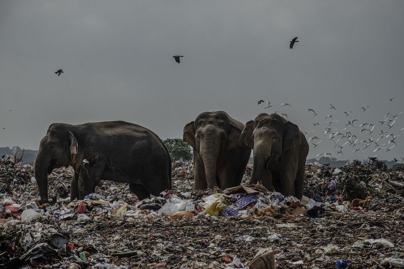 Here in Sri Lanka, more than 300 elephants die in a year, Just look at this photo, you will feel shame and sad as we see these giants in the garbage.
