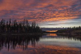 Восход луны в г. Железногорске Красноярского края. Город является ЗАТО (закрытым административно-территориальным образованием). Он расположен в отрогах Саянских гор, на берегу искусственно созданного озера, в окружении дикой тайги.