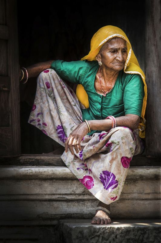 With its overpopulation of more than one million three hundred thousand inhabitants, poverty, pain and harsh, hard life become visible at every step, at every moment and in every place. This woman guarded a temple in the city of Pushkar, in the state of Rajastan.