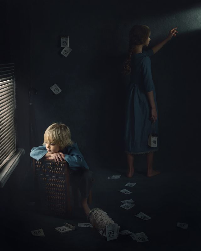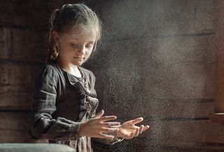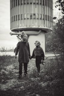 Some coffee and powdered chocolate and plim! Dirty children for a "40s childhood" concept.