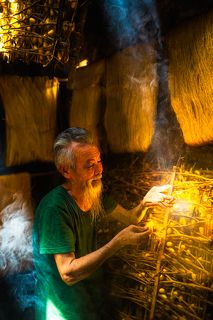 The series shows the daily activities of the Intha fishermen on Lake Inle, Myanmar. Starting with a breakfast with friends before sunrise and a small campfire on the boat, getting ready for work, working, having a break, going back to work, and having supper.