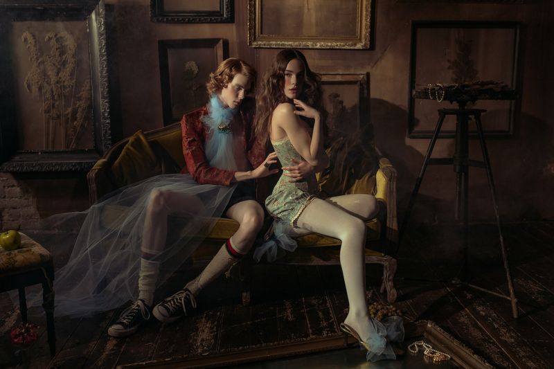 As in my two previous series, "Circus" (2020) and "Performance" (2020) in "Acting" (2020) I've continued to explore drama and theater. But this time, I wanted to go a little bit further to open a debate between ethics and aesthetics from a feminist perspective. This series presents us the dilemma about the invisible set of rules women are asked to follow to be accepted or respected because that is what society wants from them. Aspects like fashion, style and appearance that at first may seem trivial or superfluous influence how women are perceived by others. They are often misjudged by their choices and their acting, and because of the senseless standards of beauty. Acting shows two women being free without imposed rules to work as a symbol of breaking the social impositions and ties.