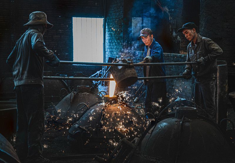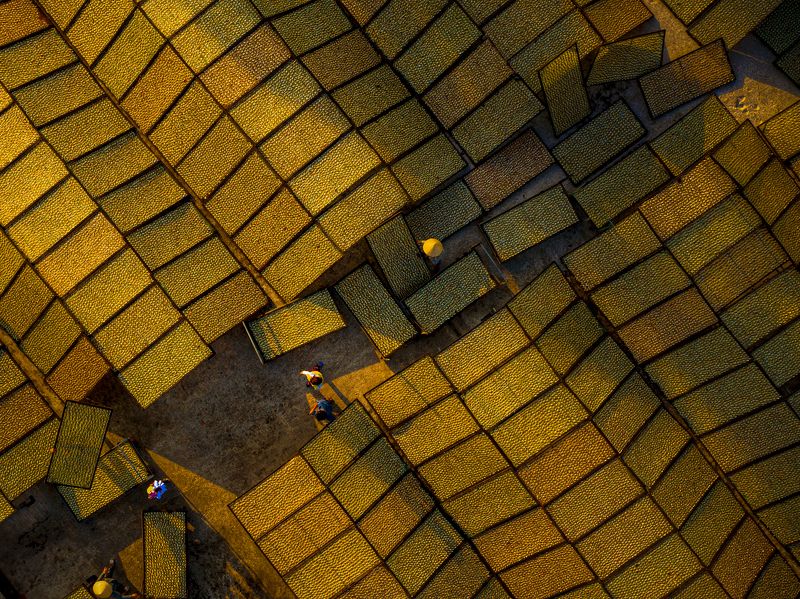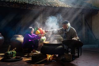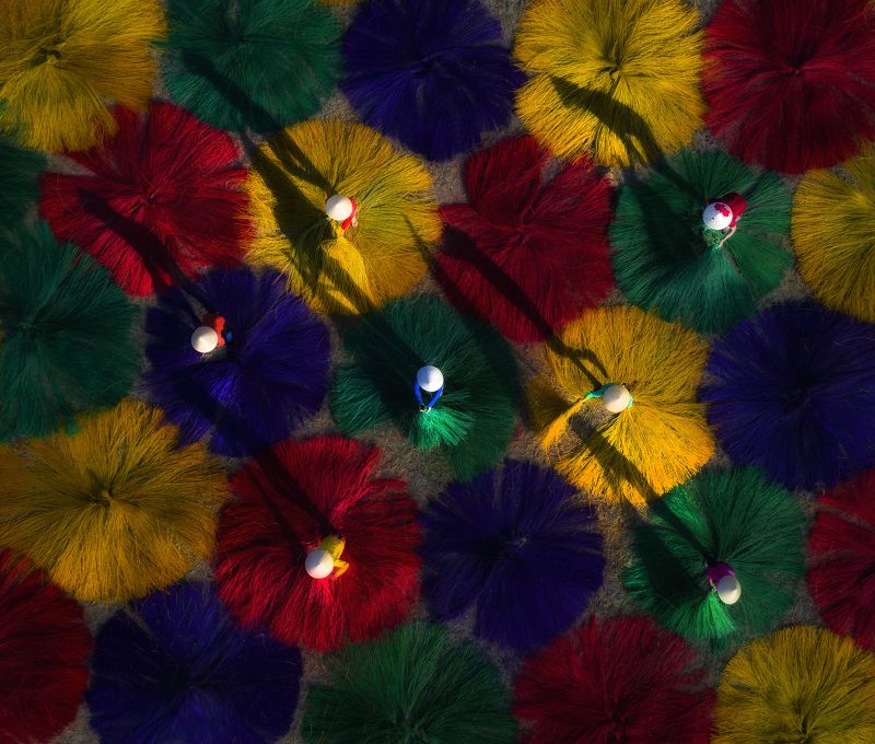 Vietnamese incense sticks: In Eastern culture in general and Vietnam's life culture in particular. Incense is the spiritual connection between yin and yang. In Vietnam, making incense sticks is one of the stages to create incense sticks. To create incense sticks must go through many processes made from bamboo. Bamboo trees, through the skillful hands of people, have created incense sticks, incense sticks are treated to create color before drying the incense. And this photo I took of the moment the woman is flipping the incense stick to dry the incense stick to create wonderful pieces of color.