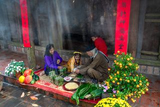 100 years ago there were 36 streets and now additional some but street culture remaining in Hanoi. Main streets show unique business name such as Fabric shop, Fish sauce shop, Sugar shop...Because of focusing in business so that people in old street prefer to get service by mobile street vendors. Vietnamese mobile street vendors/markets(food, fruit,flower…) are common name of people who use bike and baskets, hand trolley even handle bags on walking to serve. I have used weekend to follow street vendors and found that they walking or driving by bike all day and here is one of my favourite moment that Bike Flower “Xe Hoa” on the street with background is ceramic wall.