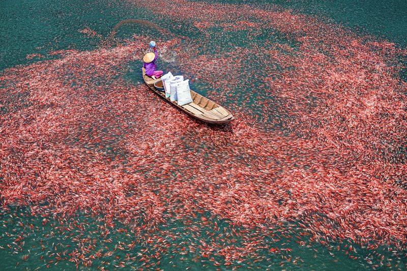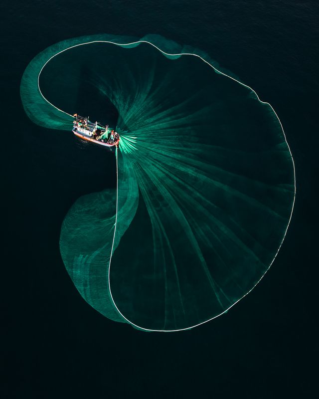 The activity of catching fish using cast nets is always an interesting sight for all. Catching this moment is one of the actions fishermen often do of theirs.