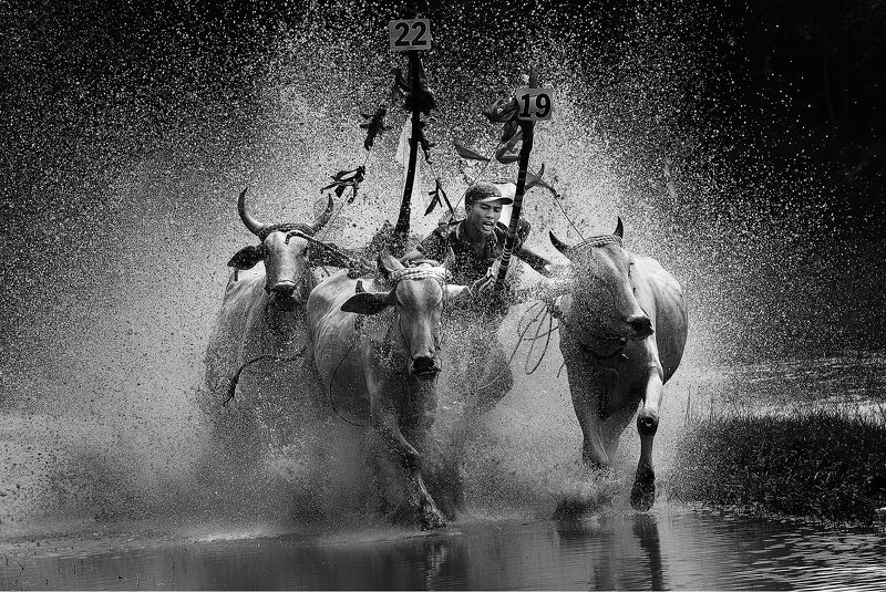 Talking about the landscape and cultural space of the Northern mountainous region - Vietnam, it is impossible not to mention the custom of cultivating wet rice on terraced fields. The industrious hands of indigenous people have been carved into the mountains for generations, creating precarious fields in the back of the sky. Wet rice farming creates the main food source for the inhabitants of this land. The famous areas for terraced fields are Hoang Su Phi district - Ha Giang province and Mu Cang Chai district - Yen Bai province. Today, the terraced fields have been recognized as Vietnam\'s National Landmarks. Every year, there are 2 seasons: the season of water pouring and the season of ripe rice. 1. Waterfall season: Usually begins in the rainy season, from mid-May to the end of June. People build banks, keep rainwater in the fields, plow, harrow, and transplant rice... 2. Rice season - harvest: After a few months of care, around the end of September, early October, the rice begins to ripen on the young slopes. Throughout the villages, people embarked on the harvest in joy and bustle like a festival. I took this photo on June 17, 2018 in Ban Phung, Hoang Su Phi district, Ha Giang province, Vietnam. On the occasion of heavy rain, people build banks, keep water and plow the land. The photo captures the image of a couple plowing the field together. They are residents of the Pa Then ethnic minority. According to local custom, they use buffalo to plow the fields. In this picture, the young buffalo does not know how to pull the plow as instructed by the husband. So the wife has to tie the rope to the buffalo\'s nose and stretch it to lead it... That image reminds us of the \"JOIN\" - \"TOGETHER\" between husband and wife, between man and woman, between man and animal, who have transformed nature and created the heritage of terraced fields in the area. this ... Anyone who has been to the highlands once will forever remember the terraced fields like the colorful \"mountain patterns\" here. Magnificent natural scenery, hardworking and friendly people. That attracts tourists from all over the world to come to enjoy, experience life and learn about the unique culture of indigenous peoples.