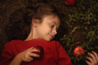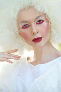 But I decided to implement it in 2021. I was inspired by the type of model. I decided to emphasize the bright red hair color with oranges, and shade it with complimentary green apples.