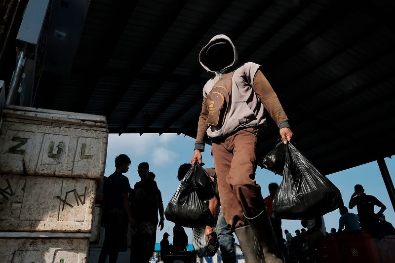 This picture is the atmosphere of a very traditional Sea Products Trading Center, precisely the Makassar paotere fish auction.
