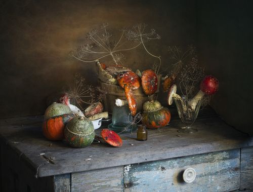 мухоморы, натюрморт, грибы, осень