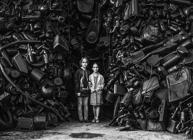 The World beyond It is a photographic project set in an apocalyptic scenario, a dystopian future in which our planet, now tired, old and the victim of epidemics, natural disasters, pollution has now ceased to be what we knew. The air is now unbreathable and it is quite difficult to survive. This photographic story is set in this scenario which sees two people as protagonists, a couple of young boys who try to survive in this hostile world full of pitfalls but poor in resources. The images want to represent a sort of story by expressing different emotional states that young people experience during their daily life. In this case exploring a new, abandoned and declining place to rest and refresh for some time in search of better accommodation along their path. The cut is purely cinematic above all for the particularity of the shots, plays of light and shadows, symmetries, depth and color grading that will be carried out during the editing phase. Two vintage gas masks (cold war style) will be used mainly to give an almost asphyxiated sense and difficulty in surviving in this scenario. On the masks, to be precise on the part where the filter should be mounted, small colored wildflowers will be applied to symbolize the desire to be reborn and survive of mankind. This choice in using these masks is symbolic and brings this dystopian future closer to our present. The chosen outfit is minimal precisely to express the scarcity of resources and goods available. The makeup will be almost absent and with a smudged effect especially to express sadness and despair.