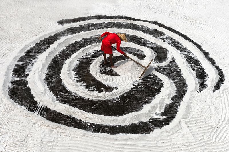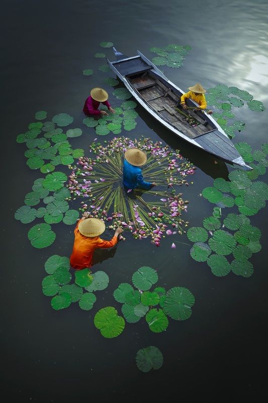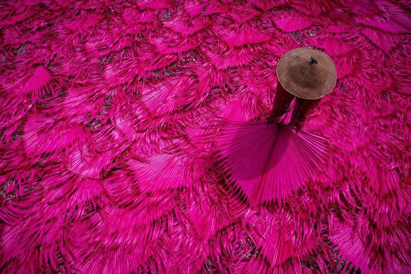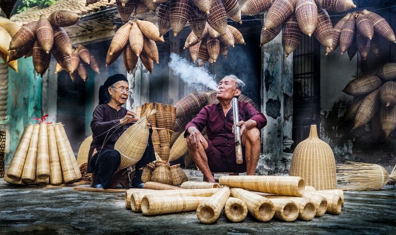 Vietnamese incense sticks: In Eastern culture in general and Vietnam's life culture in particular. Incense is the spiritual connection between yin and yang. In Vietnam, making incense sticks is one of the stages to create incense sticks. To create incense sticks must go through many processes made from bamboo. Bamboo trees, through the skillful hands of people, have created incense sticks, incense sticks are treated to create color before drying the incense. And this photo I took of the moment the woman is flipping the incense stick to dry the incense stick to create wonderful pieces of color.