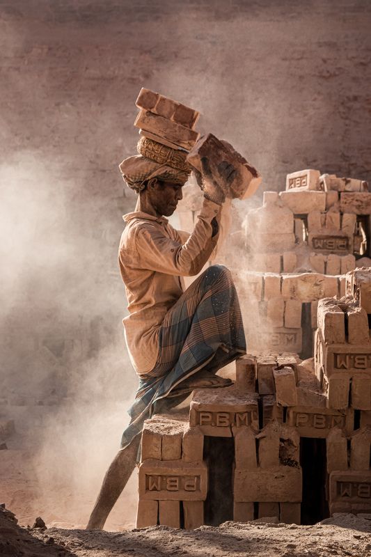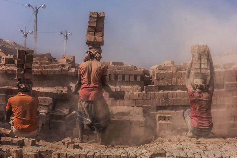 A brick field worker carrying bricks in a brick field in Dohazari, Chittagong, Bangladesh on 16 December, 2020. A very common scenario mostly in developing countries in Bangladesh where every day thousands and thousands workers day and night in a tough and danger environment as no proper equipment and materials are available for them, and at the end of the day of working either they are broken physically or mentally as being underpaid or victim of ruthless exploitation. Do not they deserve to have facilitation for this toiling work?