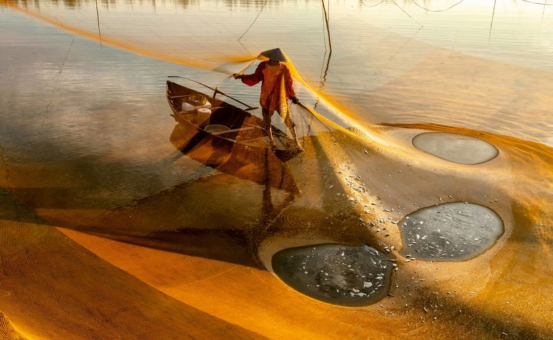 Fishermen visit fish nets