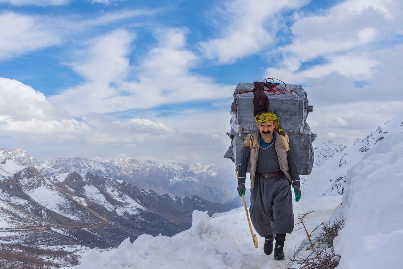A kolbar (Persian: کولبر) or kolber (Kurdish: کۆڵبەر) or cross-border labor[1] is a worker who is employed to carry goods on his/her back across the borders of Iran, Iraq, Syria and Turkey legally or illegally.[2] Most kolbars live in Iranian Kurdistan, where the Kurdish provinces are among the poorest in the country. Kolbars also live in Turkish Kurdistan and to a lesser extent Iraqi Kurdistan. Since kolbar work is mostly considered illegal, kolbar workers have no insurance, retirement plans and unions. Among the kolbars are highly educated young people, who have no job because of high unemployment in Kurdish provinces.[3] According to Iranian statistics, only in the Kurdistan Province more than twenty thousand people depend on being a kolbar for sustenance.[4] The phenomenon of kolbari is tied to the de-development in Rojhelat.[1]