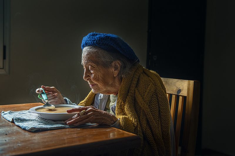 This series was born from the daily sharing in pandemic with my paternal grandmother. After living 2 years in a residence, we received her and my children at home. I can contemplate a bond of mutual love, expressed in experiences, forms and freedom. Her magic is still leaving luminous, wise, subtle and deep sparkles. And although the fear of death is present in this relationship of subtle beauty, accompanying a dignified old age, cared for and in family are the objectives. Silent death accompanies us and we do not know when it may come. Silence recharges energies. Talks move away from each other. Everything slows down. A challenge for both. Old age and pandemic. Old age and family. Old age and healthy living. Old age and dignified life. In many cases they seem antagonistic. Old age and love is the only thing that saves. Pandemic series JOSEFINA 'CHOCHA' ROLDÁN. 95 years old. Paternal grandmother. Erica Voget