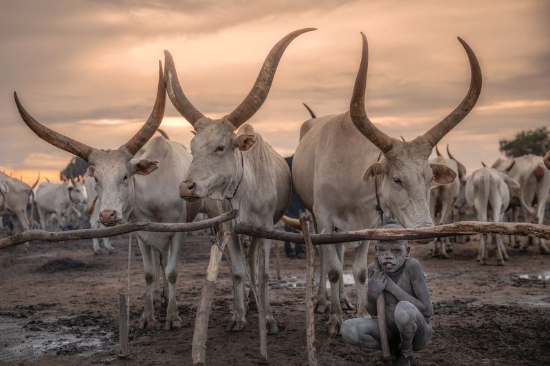 The Mundari tribe of South Sudan, are known for their peculiar relationship with their cows. The relationship the Mundari man has with his cows is on a different basis which in turn nurtures the peculiar relationship between man and a cow, developing into a bond Being predominantly nomads, there is no need to worry about how cows will fit into a house as domestic pets.This bond seems to have risen from economical egocentric and chauvinist factors. A typical Mundari male hustles for more cattle to be able to marry.The photo is part of the album "SOUTH SUDAN TRIBAL EXPEDITION 2021"