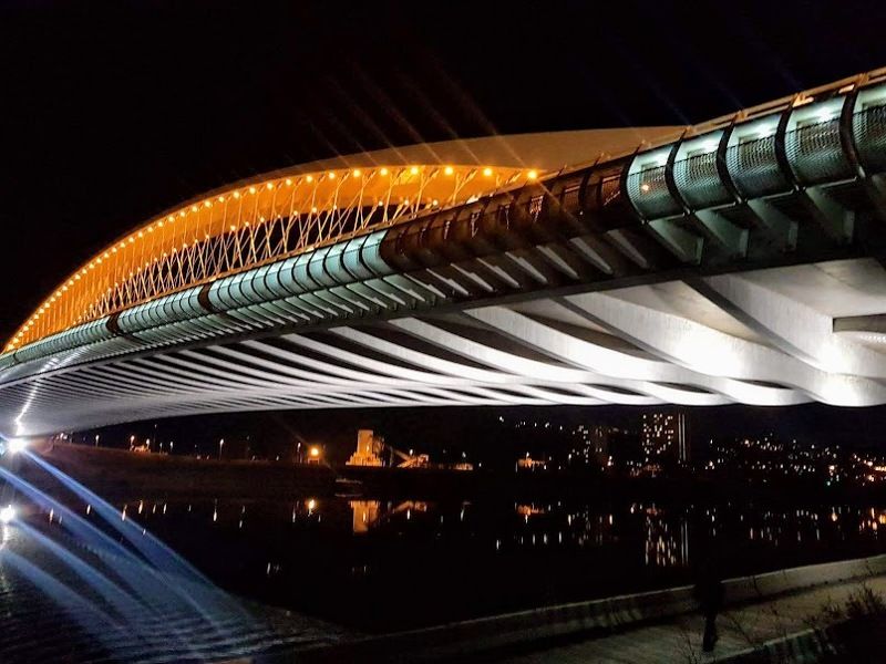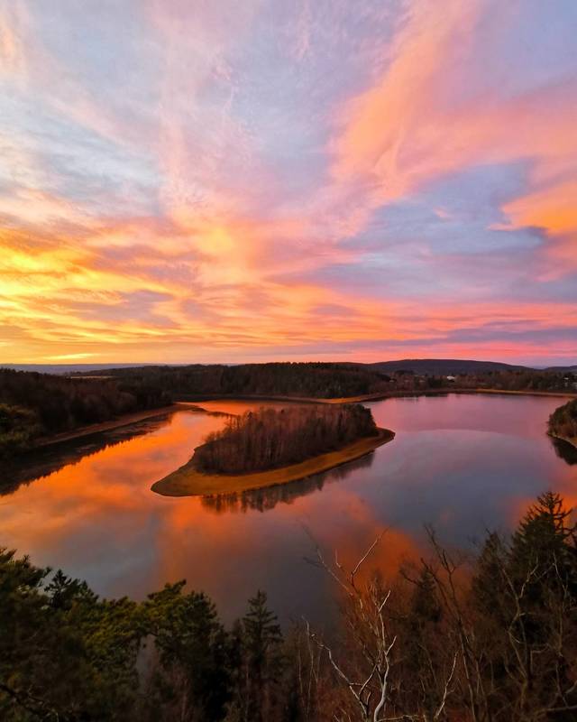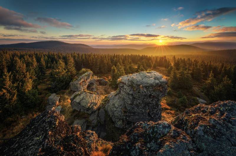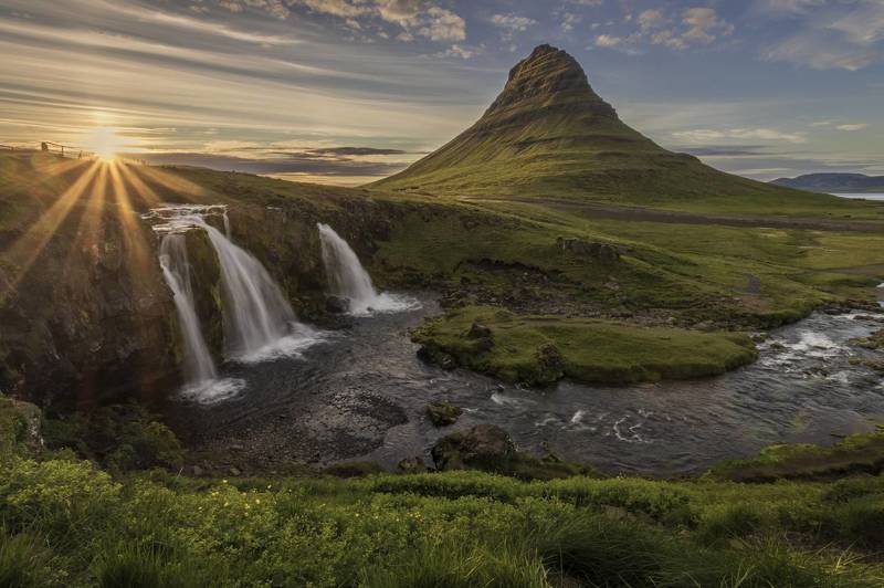 Granite, 80 m high tidal island with a monastery church. The difference in height of the sea level at high and low tide is about 15 m, the most in Europe. So either the mountain is surrounded by quicksand, or it "floats in the sea". The low tide exposes the seabed up to a distance of 15 km.