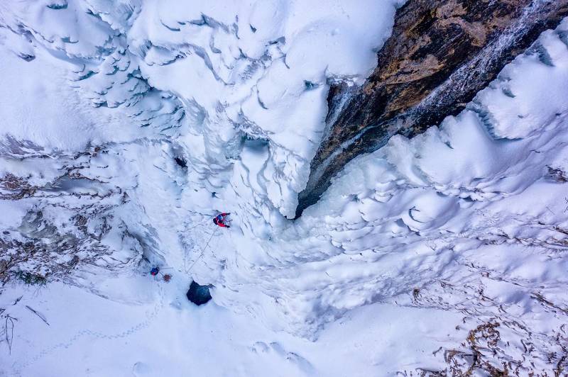 Those two members of mountaineering service of Montenegro were surprised at the top of 150 meters frozen waterfall. At the bottom ice was nice and thick, but only from above it was clear that the top of the last 50 meter section was melted. Thanks to their experience they summited after 4 hours, but they claimed that it was scariest thing they have ever done!