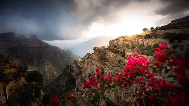 glow. This photo was taken in yemen. the city of Taiz, specifically in the soil, which united in its beauty, nature, the greatness of its mountains, and its gardens hanging on the mountains