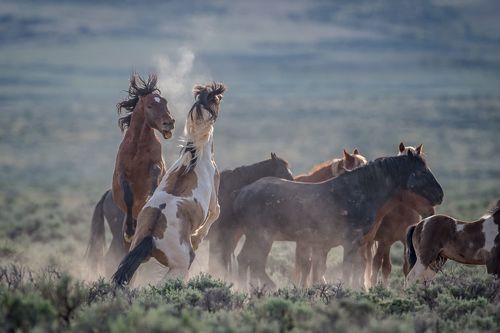 As band stallion Traveller and his little family passed by Stillwater's band, Istaga, a bay bachelor that is always pestering Stillwater, decided to switch his attention to Traveller, and give him a surprise.