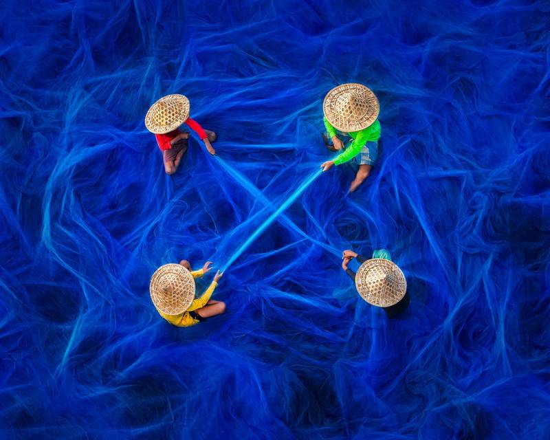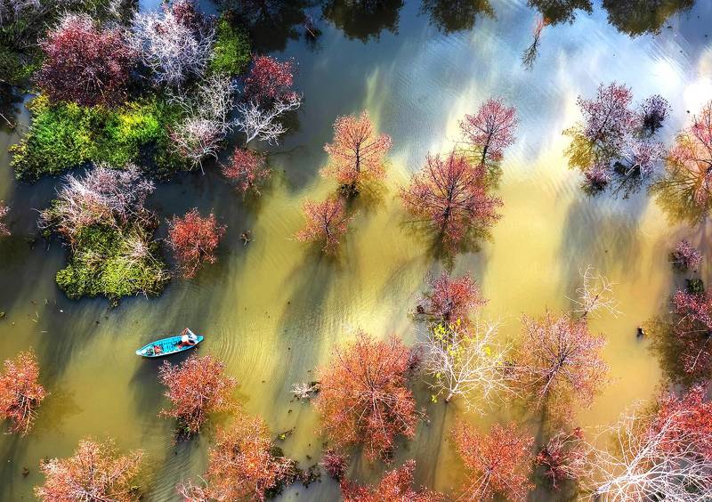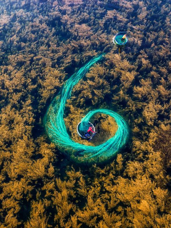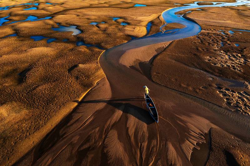In the downstream of Ky Lo river - Phu Yen province, Vietnam, where the longest wooden bridge in Vietnam crosses - Ong Cop wooden bridge, this is considered one of the symbols of Phu Yen tourism. This area is a place to fish and scratch snails for a living. On high tide days, people canoe to travel in this area. On low tide days, after raking snails, people have to wade through shallow water to return home.