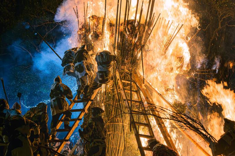 Ski season closing festival The main event is to ski over the water hole.