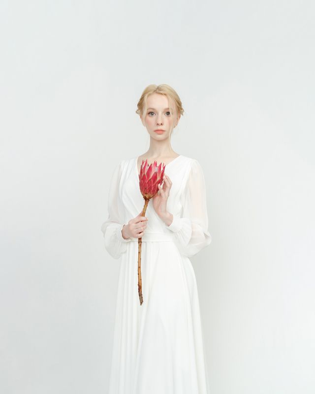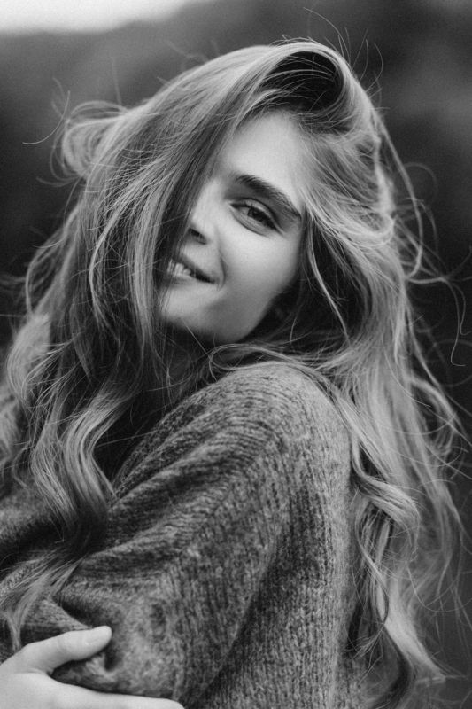 Beauty can take many forms, everyone perceives beauty differently. The strong gaze of the model looking straight into the camera draws the viewer in, as if hinting at something she wants to reveal to him, but the cold gaze is a kind of opposite of the warm portrait that was taken during the golden hour. The photo was created using daylight and a reflector, which gently softened the transitions.