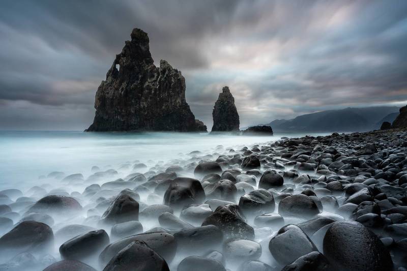 A view of one of the most impressive mountains in Iceland - Kirkjufell. It is said to be the most photographed in the country. Although it was a little before midnight and there was hardly anyone at the most popular photo spot to capture it, we decided to keep the cameras in the bags and continue walking, looking for different compositions. The tide was low and this allowed us to walk for kilometers along the mountain, which paid off with the discovery of an impressive sight - countless piles of lugworms (sandworms). I had only seen them in some documentary series and the sight was amazing to me. The perfect foreground for a photo of the mountain - with the piles shapes imitating it. An hour after midnight, sunset was still going on and the light was surreal - a sense of a whole new world.