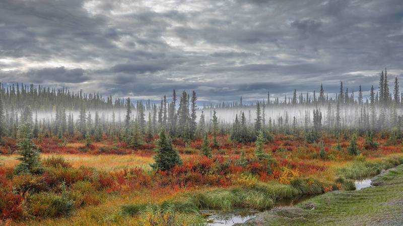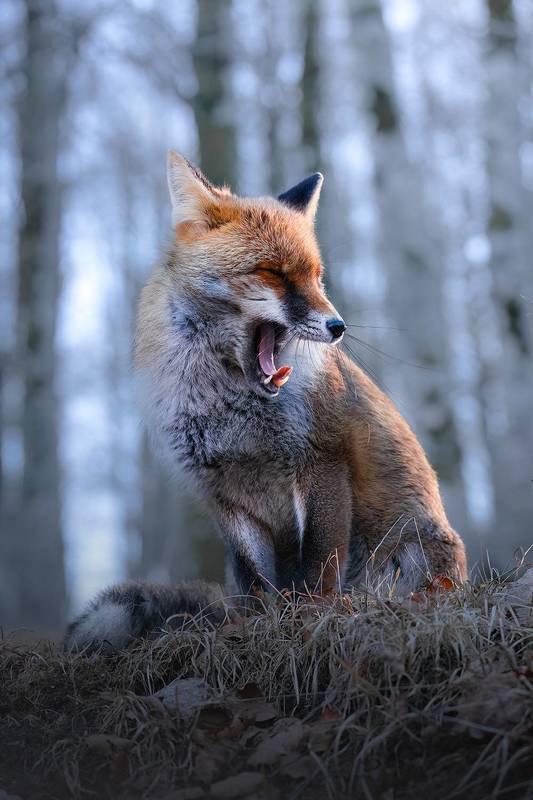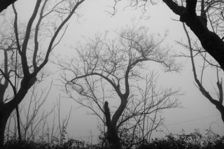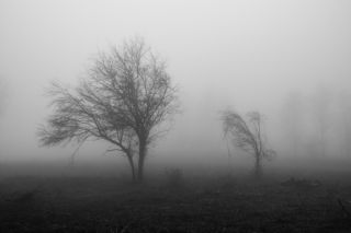 t was a cold, foggy morning; the sunrise was already coming to an end. I took one last look around and saw this glimpse of soft colors, a row of bare trees wrapped in a light mist.